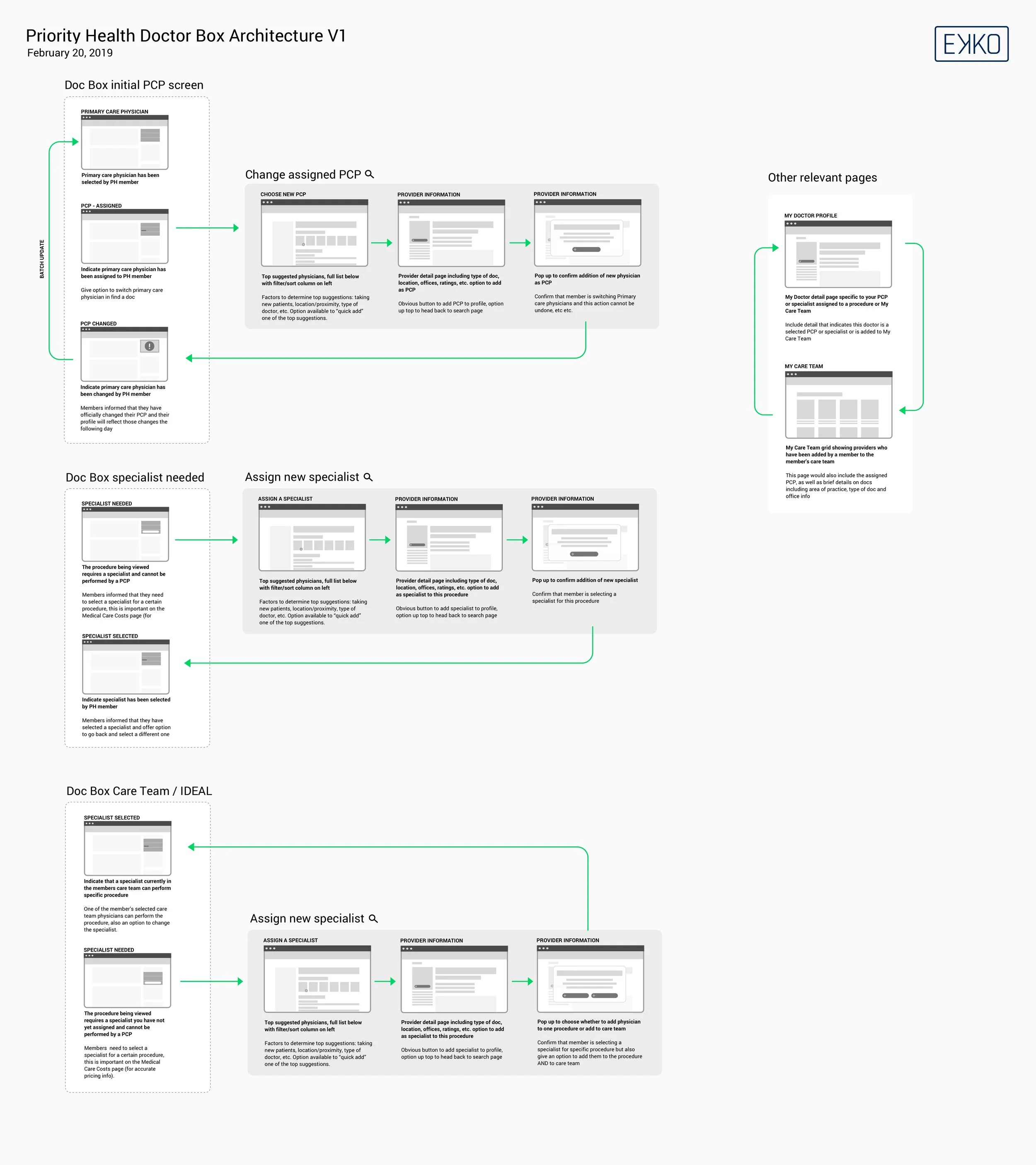 As a part of the scaled agile team at Priority Health, I built user flows, planned work within the SAFE framework, communicated with the development team, and design features. As a leader on the team I also helped plan and facilitate workshops for the design, development, data and product teams.